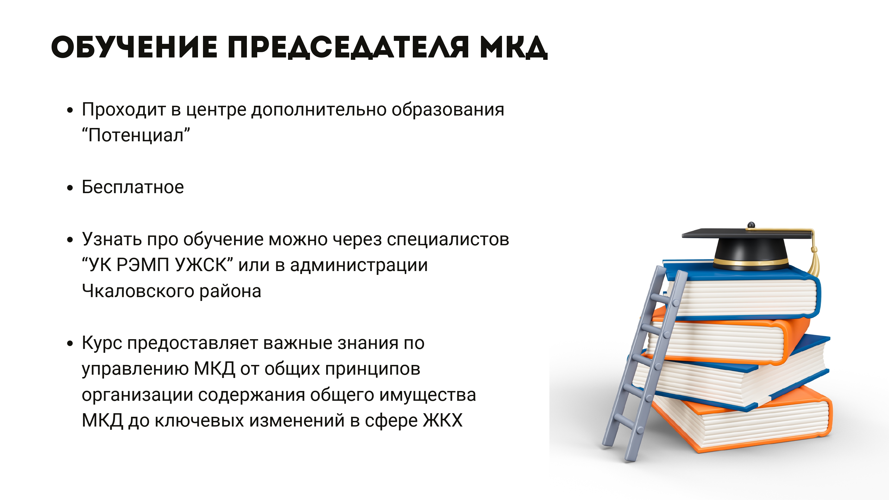 Для того чтобы подкрепить свои знания в управлении многоквартирным домом – Денис Андреевич прошел обучение на председателя. Предложение о прохождении обучения поступило от специалистов «УК РЭМП УЖСК» и администрации района. Курс идет 3 дня, проходит в центре дополнительного образования «Потенциал» и по итогу каждый получает диплом.