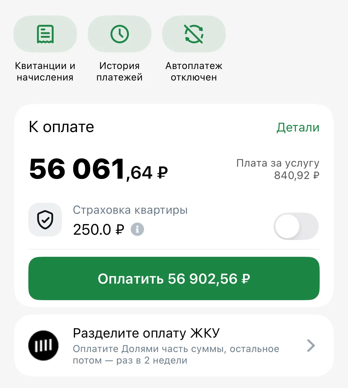 - Сервис доступен собственникам с суммой долга от 20 000 до 200 000 рублей. Кнопка «Оплатить долями» отображается в разделе «Платежи».